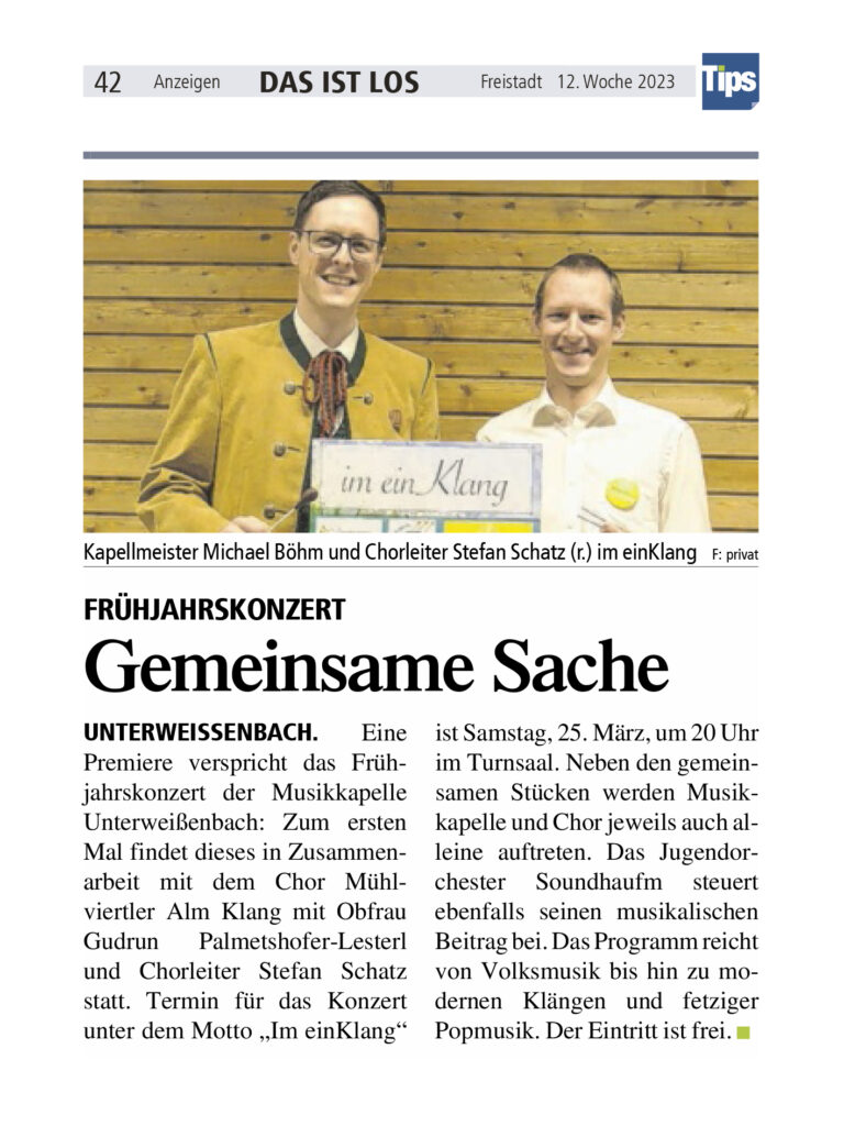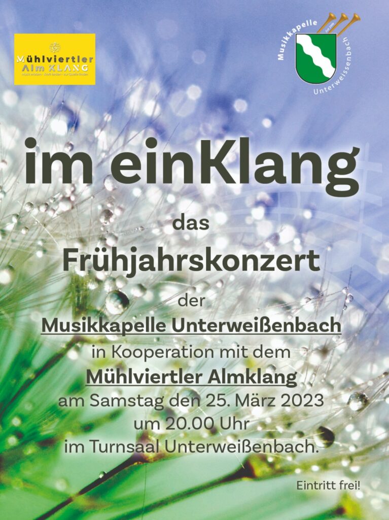 Herzliche Einladung zum Frühjahrskonzert der Musikkapelle Unterweißenbach unter dem Motto „im einKlang“.