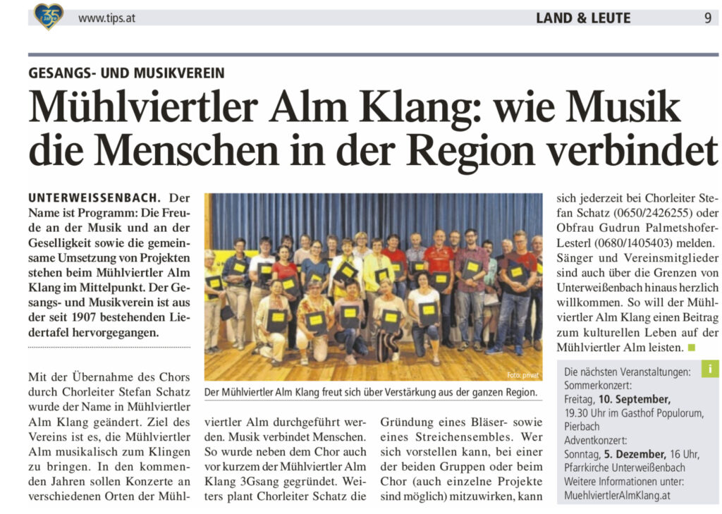 Tips Pressetext Stefan Schatz26. August 202117. März 2023 Vor kurzem ist die Tips auf uns zugekommen und hat gefragt ob wir unseren Verein vorstellen wollen, heute ist der Artikel dazu veröffentlicht worden 😊 26.08.2021 Pressetext in der Tips – Ausgabe KW34 Bezirk Freistadt – Seite 9
